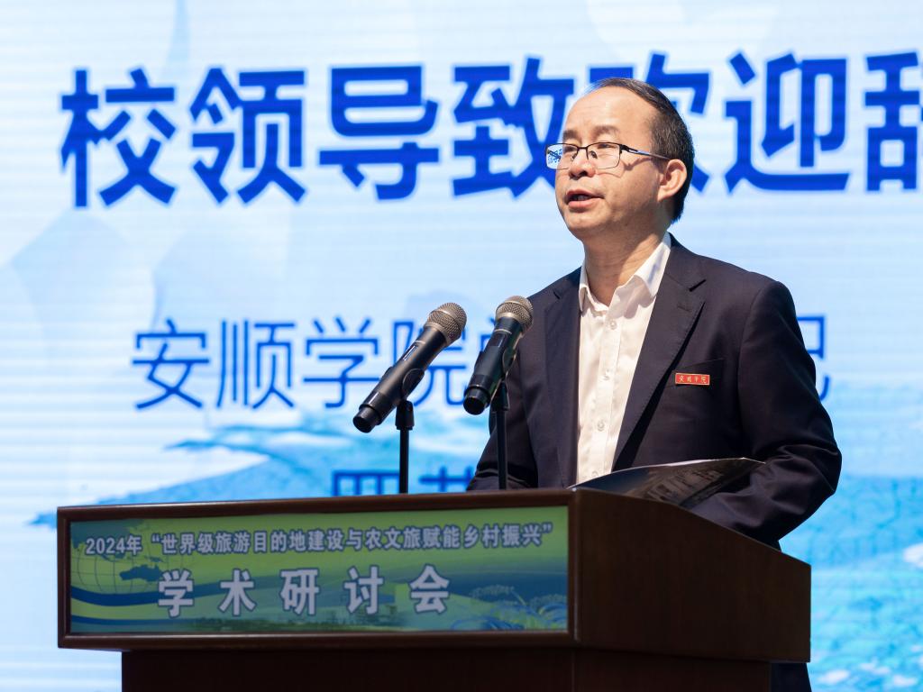 5月18日,2024年“世界级旅游目的地建设与农文旅赋能乡村振兴”学术研讨会在安顺学院举行。本次研讨会在贵州省教育厅的指导下,由安顺学院、贵州省社会科学院主办,贵州省高校乡村振兴研究中心、安顺学院旅游学院、安顺学院经管学院、2023年贵州省哲学社会科学规划重大课题《贵州推动世界级旅游目的地城市建设路径研究》课题组共同承办。省内外政界、学界、教育界、新闻媒体界、企业界等多个领域的200余名专业人士参加研讨会。贵州省教育厅党组成员、副厅长(保留正厅长级)陈云坤,贵州省社科院党委书记黄朝椿,贵州省社科联党组成员、秘书长丁凤鸣,安顺市人民政府副市长汪文学等出席开幕式。开幕式由安顺学院校长曾丽主持。
