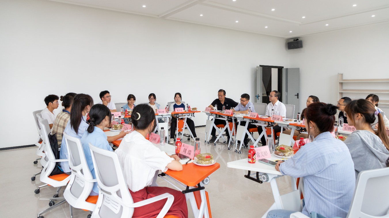 座谈会上,师生们其乐融融。罗荣彬、殷红敏亲切询问同学们进校后的生活、学习状态,向现场同学送上月饼,向他们并通过他们向全校学生及家长表示节日的问候和祝福。同学们表达了对学校和老师的感谢和节日祝福,分享自己入学以来所见所感所思,就人生思考、职业规划、专业学习、实践活动等畅所欲言。