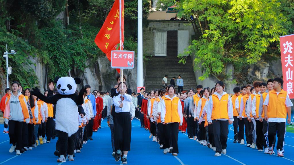 本次赛事的主题是“弘扬长征精神,铸就健康体魄”。在这场体育竞技盛宴中,将展现学子们的青春洋溢的风采。上午9时,运动员入场。踏着欢快的《运动员进行曲》,国旗队、校旗队、彩旗队、射弩方队、裁判员方阵和来自14个二级学院的运动员代表队相继入场。