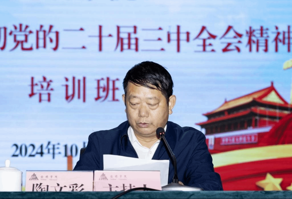 2024年10月23日至10月25日,安顺学院举办深入学习贯彻党的二十届三中全会精神培训班。安顺学院党委书记罗荣彬作培训第一课,党委副书记陶文彩主持培训。全校处、科级干部,全体党员教职工共500余人参加培训。
