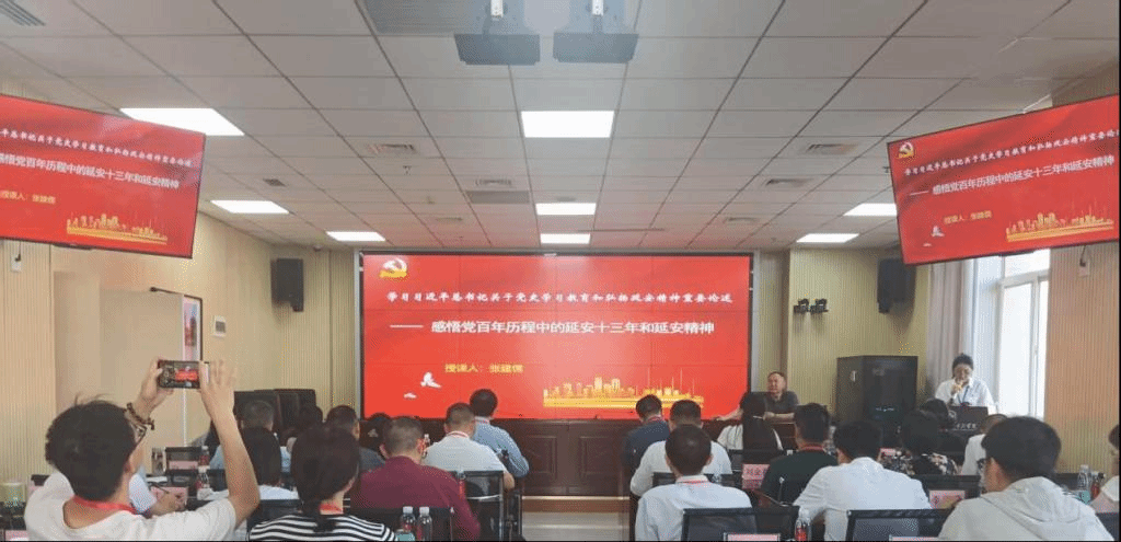 在泽东青年干部学校,培训班学员们认真聆听了张建儒教授《感悟党百年历程中的延安十三年和延安精神》的专题授课,深入了解党中央在延安十三年的光辉革命历程,系统学习了延安精神。
