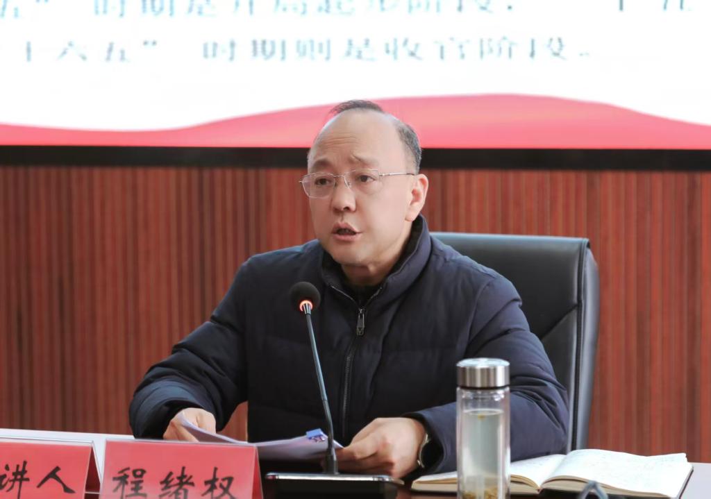 二是对标省委部署,引领学校高质量发展。程绪权宣讲了省委十三届八次全会精神,要求全体教职工深刻把握贵州“十四五”成就和“十五五”目标任务。他强调,学校要主动对接贵州省围绕“四新”主攻“四化”等决策部署,贯彻落实“一体推进教育科技人才发展”的贵州实践,在谱写中国式现代化贵州实践新篇章中找准定位、积极作为。