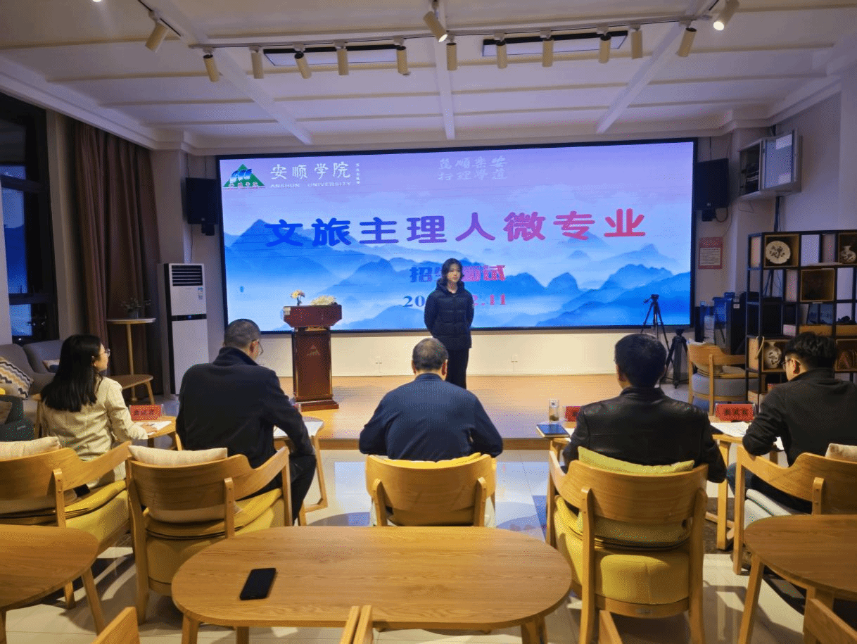 2025年12月11日,安顺学院旅游管理学院在实验楼141举行首届“文旅主理人微专业”招生面试。安顺学院旅游管理学院院长赵世钊、党委副书记白波、副院长杜成材,以及学院教师和辅导员共同担任面试评委。