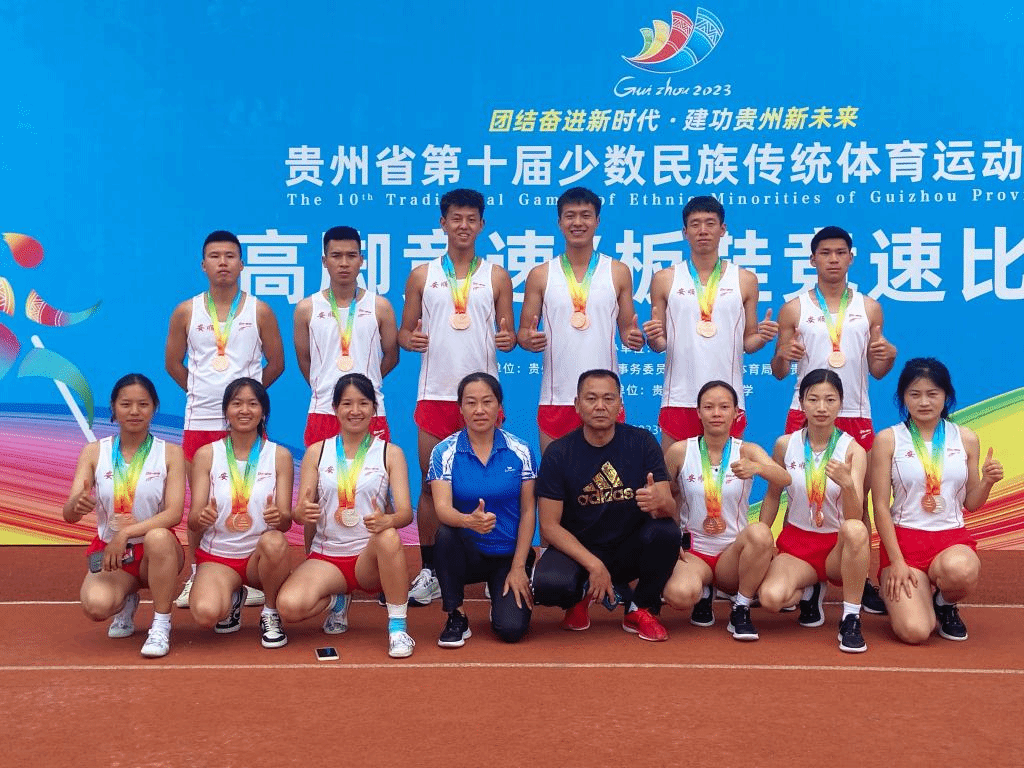 在运动会上,运动健儿不负众望、奋勇争先,取得了2个一等奖、17个二等奖、22个三等奖的好成绩。其中,蹴球队获混双一等奖(金牌)、女双二等奖(银牌)、男双三等奖(铜牌)。射弩队获传统弩跪姿一等奖(金牌)、3个三等奖、传统弩混合团体二等奖、标准弩混合团体二等奖、传统弩立姿3个二等奖、1个三等奖、标准弩跪姿1个二等奖、2个三等奖、标准弩立姿1个二等奖、2个三等奖。押加队获2个二等奖(76Kg、55Kg)、2个三等奖(76Kg、68Kg)、板鞋队获1个二等奖(女子2x100米接力)、4个三等奖(女子100米、男子100米,4x100米接力)、高脚竞速队获2个三等奖(女子2x200m接力、4x100m混合接力)。陀螺队获6个三等奖(男团、女团、男双、女双、男单、女单)。表演项目获2个三等奖(布艺昂缪、花样跳绳)。