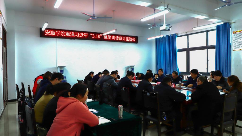 2024年3月18日,安顺学院在乐学楼四楼会议室召开重温习近平总书记“3.18”重要讲话发表五周年研讨座谈会。安顺学院党委书记罗荣彬,安顺学院党委副书记陶文彩,宣传部、教务处等职能部门主要负责人,马克思主义学院领导班子成员,安顺学院全体思政课教师参加会议。会议由马克思主义学院党委书记王罡主持。