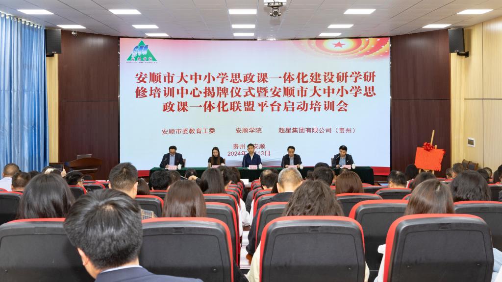 2024年4月13日,安顺学院马克思主义学院承办的安顺市大中小学思政课一体化建设研学研修培训中心揭牌仪式暨安顺市大中小学思政课一体化联盟平台启动培训会,以线上加线下相结合的方式在安顺学院举行。省教育厅思政处有关领导,市委教育工委(市教育局)有关领导,安顺学院校领导,各县(区)党委教育工委、市属各学校分管负责同志,市、县(区)党委教育工委办公室管理员,市属各学校管理员,安顺学院思政课教师代表线下参加会议。同时,本次培训会通过网络直播向全市各级各类学校分享。