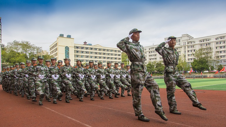 在分列式上,受训的29个连队伴着热血沸腾的旋律,迈着铿锵有力的步伐,喊着嘹亮的口号,精神抖擞地通过主席台,充分展现了意气风发、昂扬向上的精神风貌,达到了军训的预期目的和效果,书写了军训的精彩篇章。