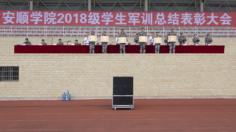 2018年9月21日上午,安顺学院2018级学生军训总结表彰大会在运动场隆重举行。安顺学院党委书记罗荣彬、副书记陶文彩,纪委书记马力,副院长郭本华,中国人民解放军西秀区人民武装部政委杨蓟,军训团团部主要领导,校属各学院党总支书记(副书记)以及各二级学院院长、副院长和各部、处、室主要负责人以及参训学生参加总结表彰大会。大会由陶文彩副书记主持。