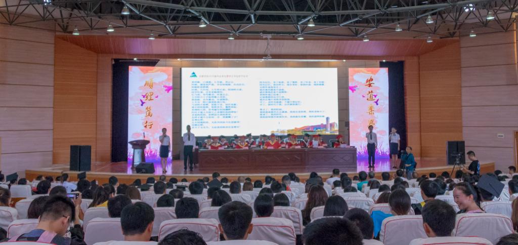 又是一年毕业季,又是学子离校时。2019年6月21日上午,安顺学院2019届毕业典礼暨学士学位授予仪式在学术报告厅隆重举行。安顺学院校长吴次南,党委副书记陶文彩,副校长顾名宇、令狐荣涛、郭本华,纪委书记蔡红英,各二级学院党委书记和院长,学校各职能部门、教辅科研单位主要负责人,毕业班班主任,同学家长代表参加毕业典礼,共同见证1407名毕业生圆满完成学业,踏上人生新征程。毕业典礼由陶文彩副书记主持。