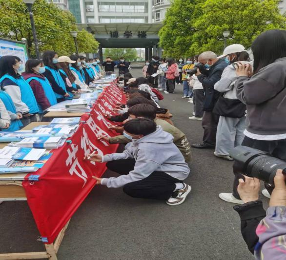 此次节水宣传主题活动通过宣传展板张贴节水知识,发放《图说河长制》《五水共治》《地下水管理条例》《中国水清教育读本》《水资源知识》等节水宣传书籍,通过节水宣传横幅签名留影等形式使师生将节水知识内化于心、外化于行,从而在校园营造浓厚的节水氛围,让全体师生深刻地体会到保护水资源的重要性。