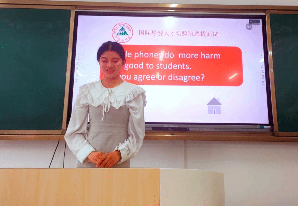 选拔过程包括初试与复试两个环节。初试以学生朗读中、英语文章的形式,测试学生的英语语音语调和普通话是否标准,初试通过学生进入复试环节。复试包含笔试与面试两部分,各占50%。笔试采用机考形式,测试学生英语基础。面试由教务处、外国语学院和旅游学院的5名教师任评委,采用中文提问、英文即兴演讲形式,考核学生的中英文语言组织能力、表达能力、应变能力等。最后根据学生的笔试和面试成绩选拔出学生,组建国际导游人才实验班,培养具有国际视野、中英文口笔语流利、能够娴熟地用汉语/英语对国内旅游文化资源进行讲解和国际交流的复合型人才。(文/图:外国语学院 柴能)