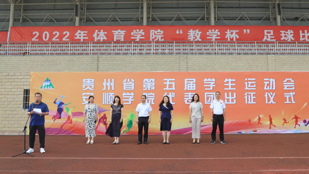 出征仪式上,安顺学院党委书记罗荣彬作出征动员讲话;安顺学院党委委员、副校长殷红敏向代表团授旗,安顺学院体育学院院长邓文红接旗;教练员代表、运动员代表进行表态发言。