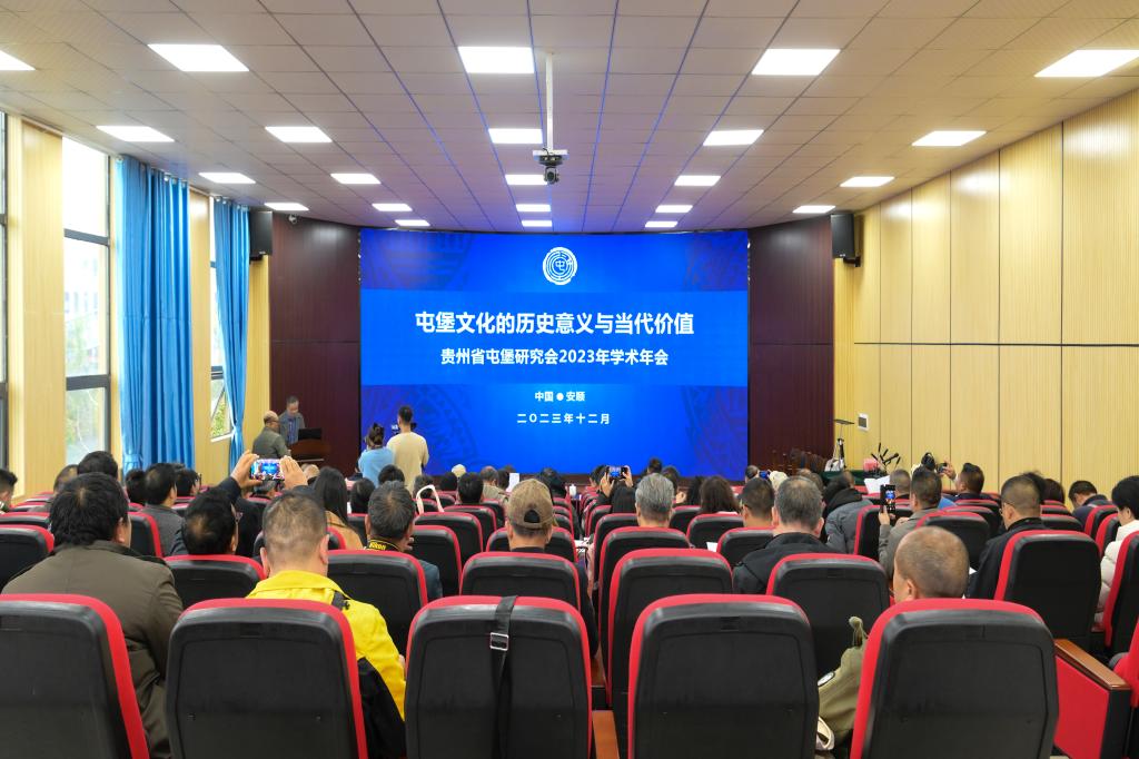 2023年12月9日,由贵州省屯堡研究会、安顺学院贵州省屯堡文化研究中心主办,安顺学院博物馆、安顺学院旅游学院协办的“屯堡文化的历史意义与当代价值”2023年贵州省屯堡研究会学术年会在安顺学院举行。安顺学院党委书记罗荣彬,贵州省社科联党组书记、常务副主席张云泓,安顺市人民政府副市长汪文学出席年会。贵州省屯堡研究会会长、安顺学院教授吴羽,贵州省屯堡研究会副会长、贵州师范学院教授陈志永,贵州省屯堡研究会顾问、教授孙兆霞,中国明史学会屯堡分会副会长、安顺学院教授吕燕平,贵州省屯堡研究会副会长兼秘书长、安顺学院教授张定贵,安顺学院乡村振兴研究中心主任孟凡松教授,省屯堡研究会顾问李晓,怀化学院副教授张建,贵州民族大学副教授宗世法,贵州师范大学副教授汪青梅,贵州省文史馆特聘馆员杜应国,天龙屯堡旅游的开拓者陈云等全省各兄弟院校、省内外专家及会员100余人参加年会。