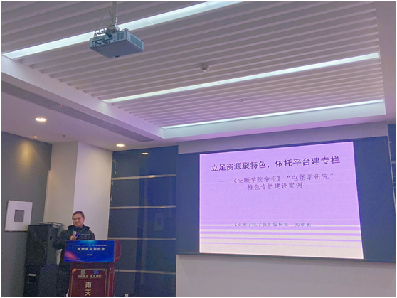 下午,召开优秀案例分享会。郑朝彬作题为“立足资源聚特色依托平台建专栏——《安顺学院学报》‘屯堡学研究’专栏建设案例”的分享发言,向与会者介绍了《安顺学院学报“屯堡学研究”特色专栏的设置历史、专栏建设及融合传播等情况,受到了大家的一致好评。(文/图:学报编辑部  刘青)