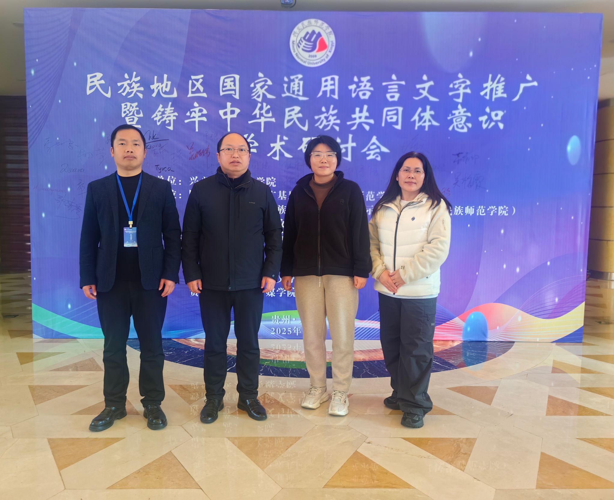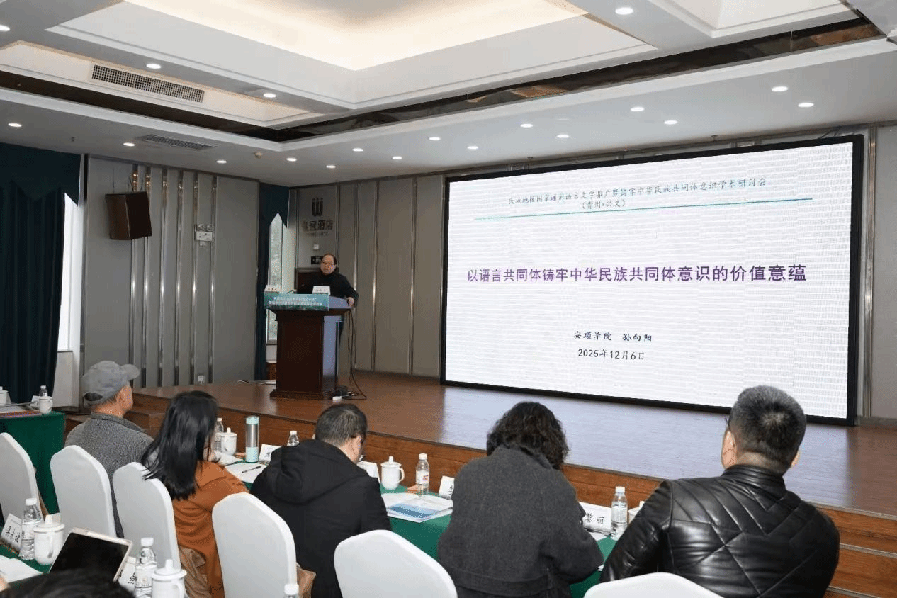 12月6日至7日,由兴义民族师范学院主办,安顺学院人文学院参与协办的民族地区国家通用语言文字推广暨铸牢中华民族共同体意识学术研讨会在贵州省兴义市举行。安顺学院党委常委、副校长孙向阳带队参加本次学术研讨会,并在开幕式大会报告环节作主旨发言,同时担任大会报告第二阶段主持。安顺学院人文学院杨新友博士,图书馆伍双林老师、李文秀老师参加研讨会。