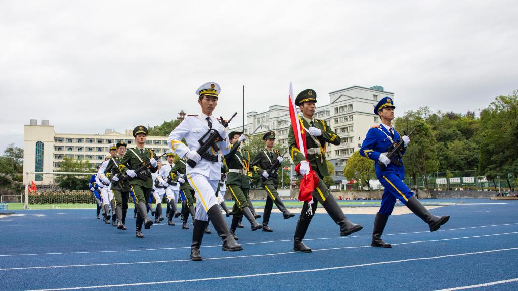 开学典礼结束后,在现场热烈的掌声中,安顺学院2023级学生军训动员大会正式开始。安顺学院党委委员、纪委书记、监察专员蔡红英宣布安顺学院2023级学生军训团干部名单。罗荣彬为2023级学生军训团授旗,学生工作处(学生工作部、武装部)处长(部长)、学生军训团副团长鲁小周代表军训团接旗。