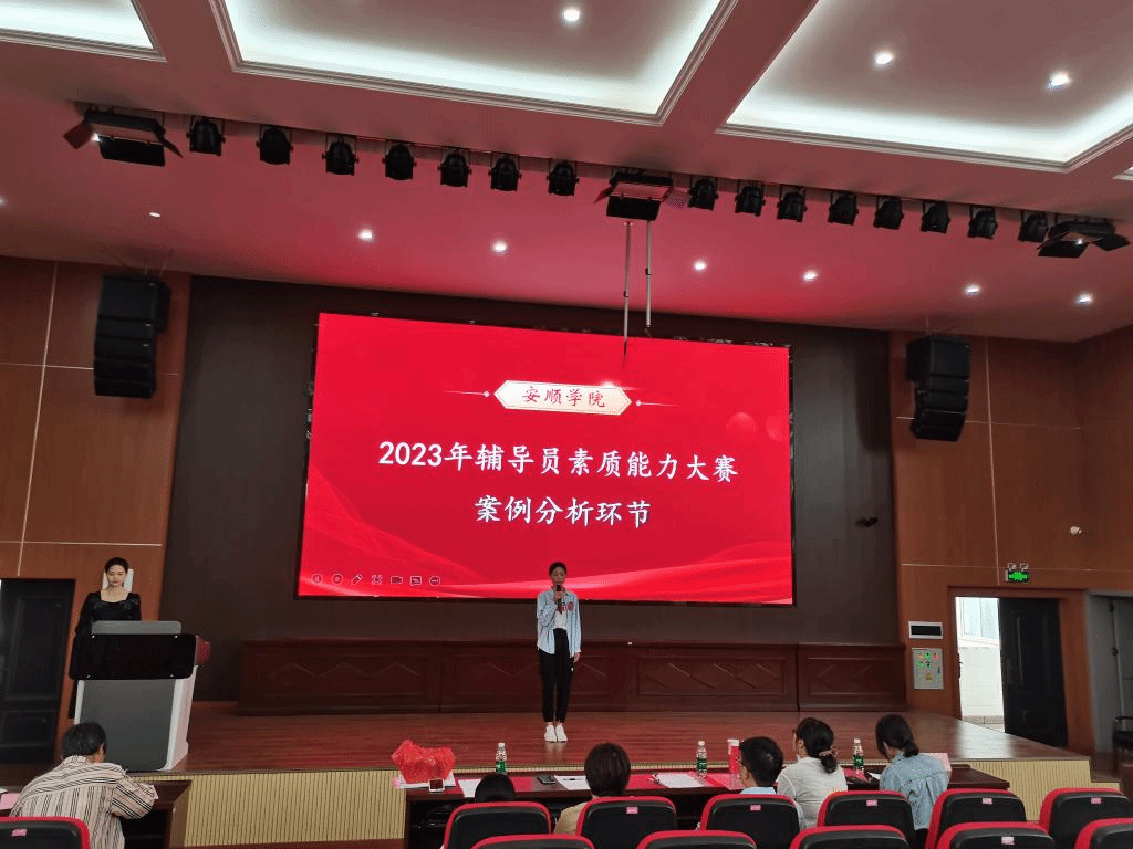 2023年9月13日,安顺学院2023年辅导员素质能力大赛暨全省高校辅导员职业技能大赛校内选拔赛在博学楼A12阶梯教室举行。来自各二级学院共16名辅导员参加现场比赛,各学院专职辅导员和学生代表等观摩比赛。