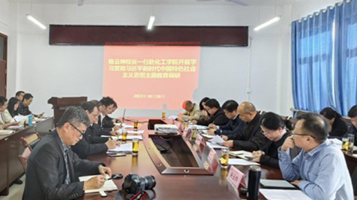 10月20日上午,安顺学院党委副书记、校长陈云坤,党委委员、副校长郭本华率人事处、教务处、科研处、发规处、乡村振兴中心、旅游学院等相关部门、学院负责人赴化学化工学院开展主题教育调研。调研紧紧围绕办学思想体系、转型发展思路、转型发展路径、转型发展举措等主题展开,化学化工学院领导班子、高层次人才、科研型教师代表、学生代表等参加座谈会。