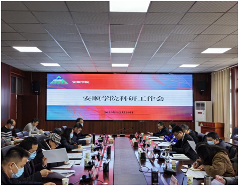 2023年12月29日,安顺学院2023年度科研工作会议在安道楼第一会议室召开,分管科研工作校领导出席,屯堡文化研究中心、乡村振兴研究中心、各二级学院负责人参会。会议由科研处副处长李魁印主持。