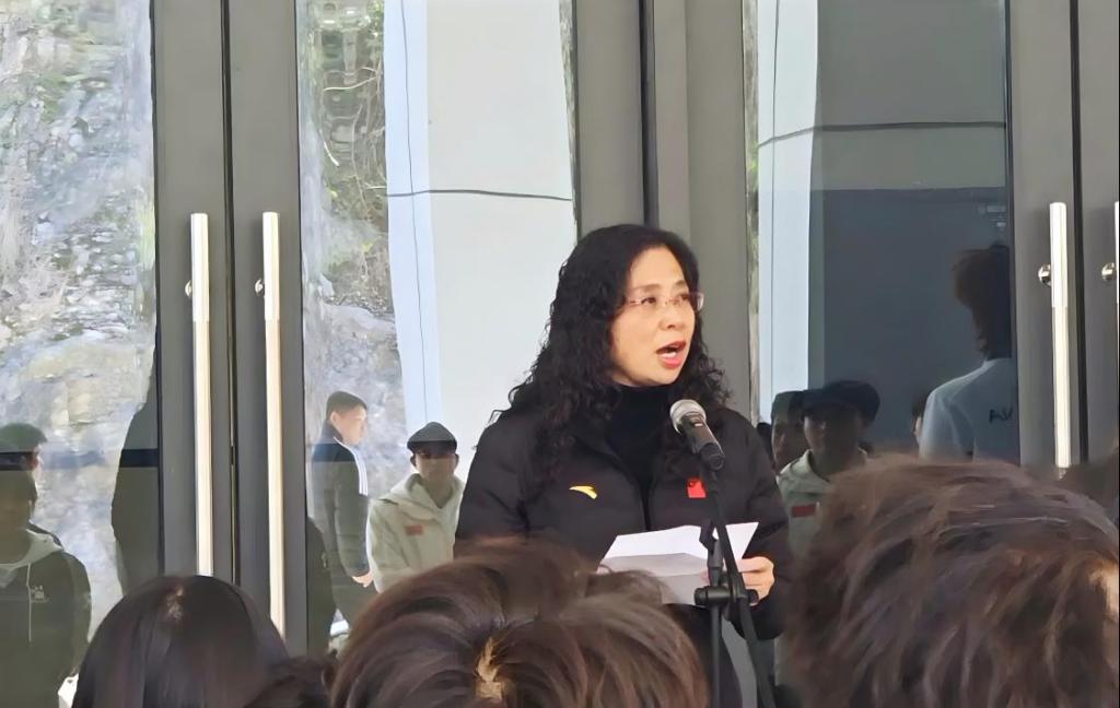 冠军代表王晨怡分享自己的运动经历与成长故事,她鼓励同学们勇于追求梦想,在体育锻炼中锤炼意志、提升自我。随后,孙黔宣布2025年贵州省掷球冠军进校园活动正式开幕。领导嘉宾与冠军运动员在掷球场地合影留念,定格这一难忘时刻。