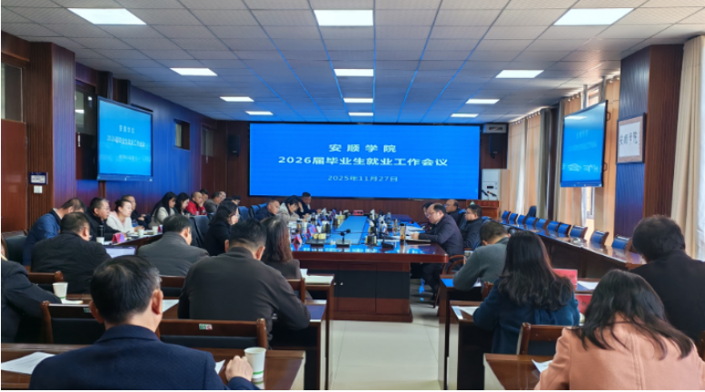 11月27日,安顺学院召开2026届毕业生就业工作会议。安顺学院党委书记程绪权、校长曾丽出席会议并讲话,党委常委、副校长杜志明,党委常委、副校长孙向阳出席会议。相关部门主要负责人,各二级学院书记、院长及招就处全体人员参加会议。会议由孙向阳主持。