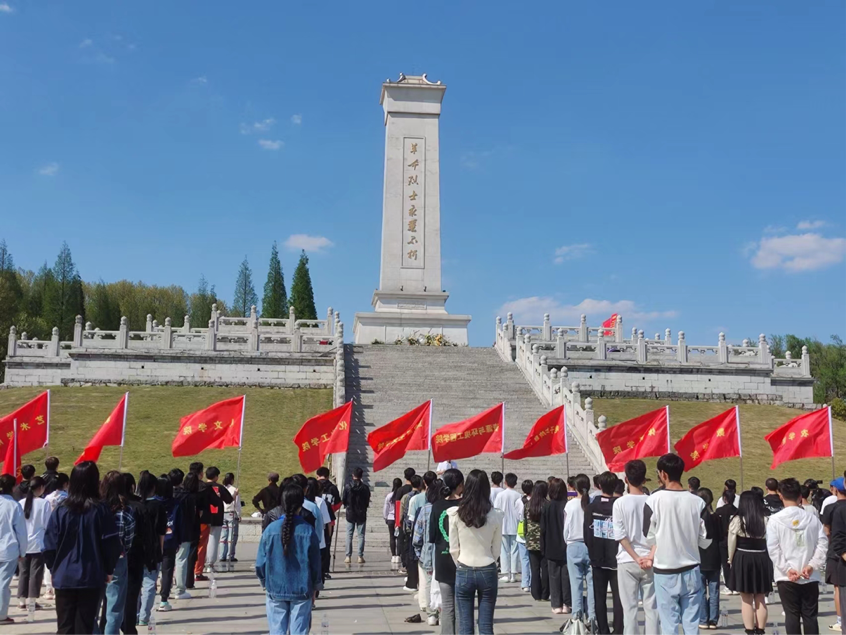 革命烈士纪念碑前,师生们为革命烈士敬献鲜花,向长眠在此的革命烈士鞠躬、默哀,共同缅怀烈士们的丰功伟绩,表达对烈士们深切的悼念和敬仰之情。