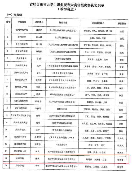 自赛事启动以来,安顺学院高度重视,认真组织,校赛期间,学校招生与就业指导处组织专家分别对指导老师和选手进行培训;省赛期间,通过专家线上辅导的形式对选手进行专业指导,精心打磨优化参赛作品,为参赛选手提供全方位的指导和支持。