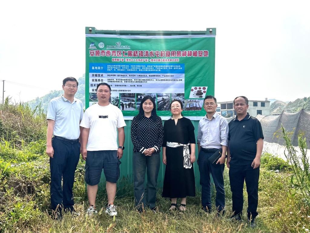 安顺学院校长曾丽(左三)一行实地查看清水屯村食用菌种植基地