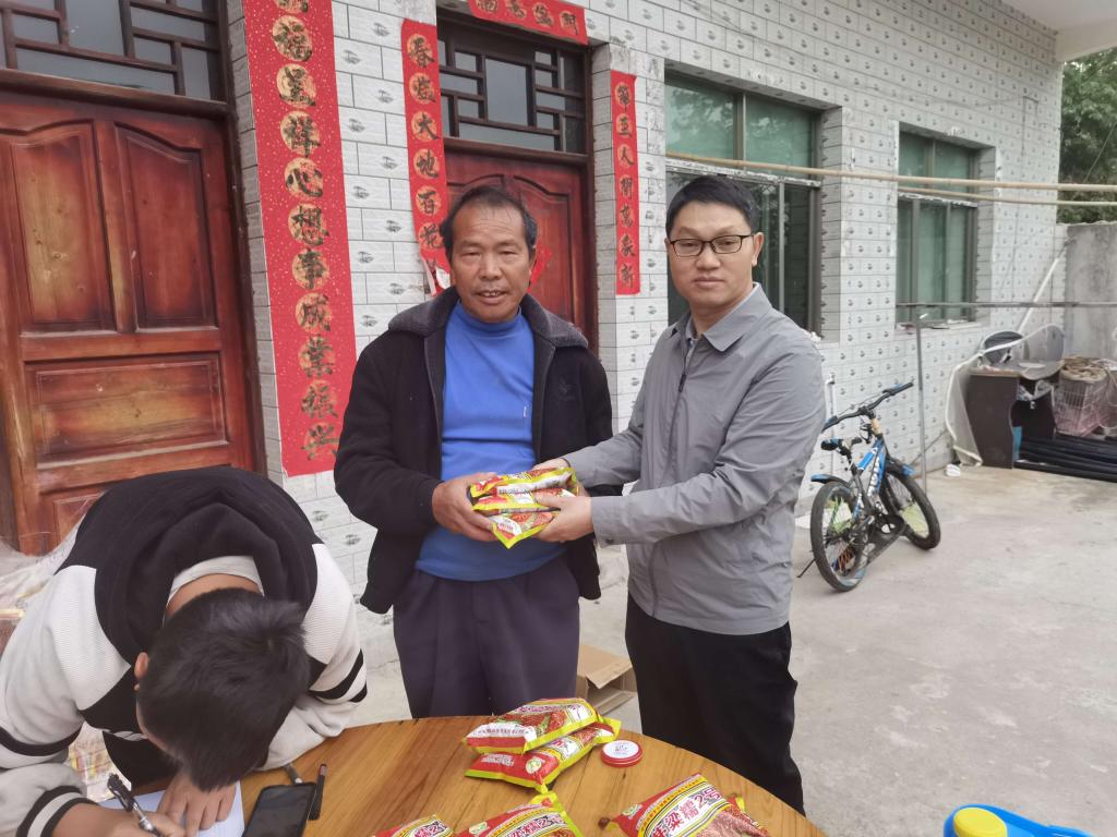 安顺学院副校长张来(右)带队为清水屯村老泥坝组发放农业生产物资