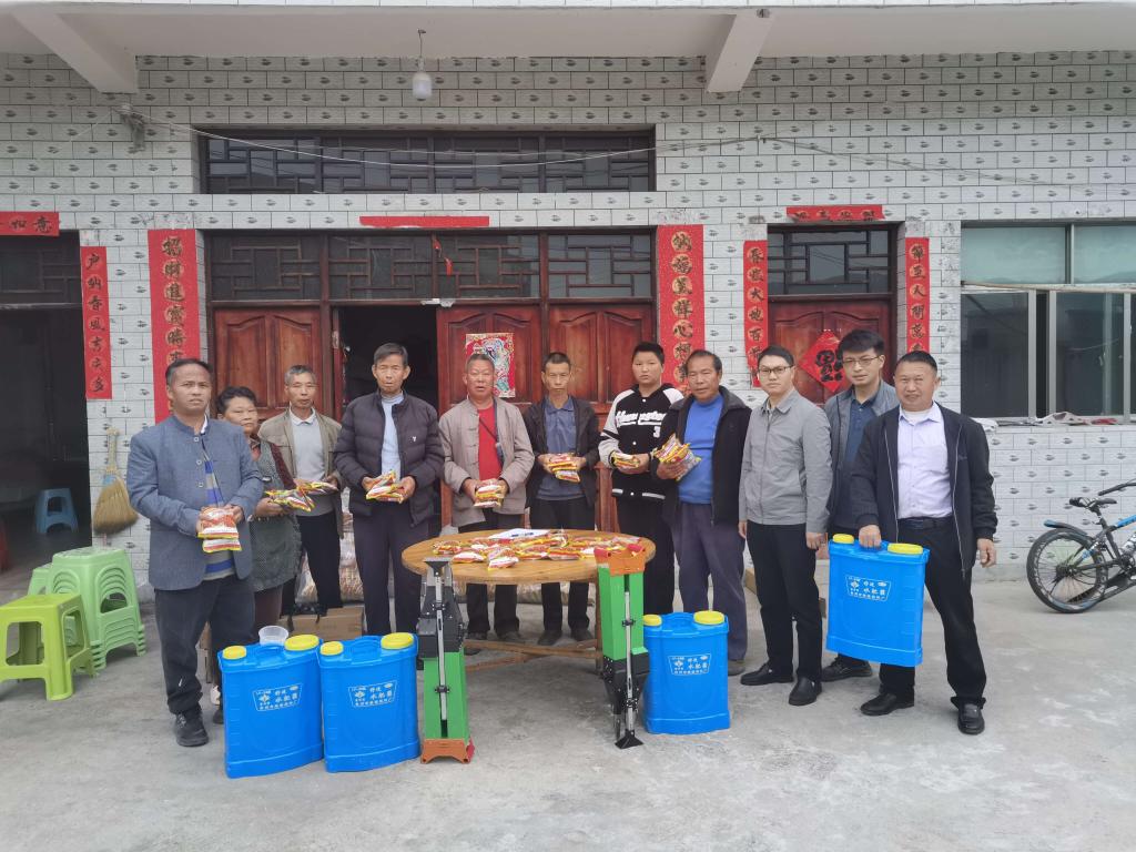 安顺学院副校长张来(右三)带队为清水屯村老泥坝组发放农业生产物资