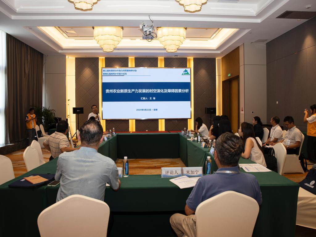 2024年8月21日至22日,第三届东西部协作助力共同富裕研讨会暨第五届南粤乡村振兴论坛在贵州省安顺市举行。本次会议由广州大学、安顺学院、安顺市农业农村局、广东省粤黔协作工作队安顺工作组联合主办,广州大学乡村振兴研究院、贵州省高校乡村振兴研究中心、广州市乡村振兴研究会、安顺学院经济与管理学院联合承办。会议主题为“过渡期后常态化东西部协作机制研究”。来自中国乡村振兴发展中心、广东省粤黔协作工作队、广东省农业农村厅、贵州省农业农村厅、安顺市农业农村局等多个政府职能部门,中国社会科学院、南开大学、西南政法大学、贵州大学、浙江师范大学、广州大学、广东外语外贸大学、广西民族大学、贵州民族大学、贵州理工大学、贵州财经大学、安顺学院等高校与科研机构,以及相关期刊杂志与媒体,共计100多人参会。本次会议通过实地考察、主旨演讲、平行论坛、圆桌会议等形式,围绕东西部协作助力乡村振兴、共同富裕,开展交流与研讨,为2025年过渡期后常态化东西部协作提供理论指导和智力支持。