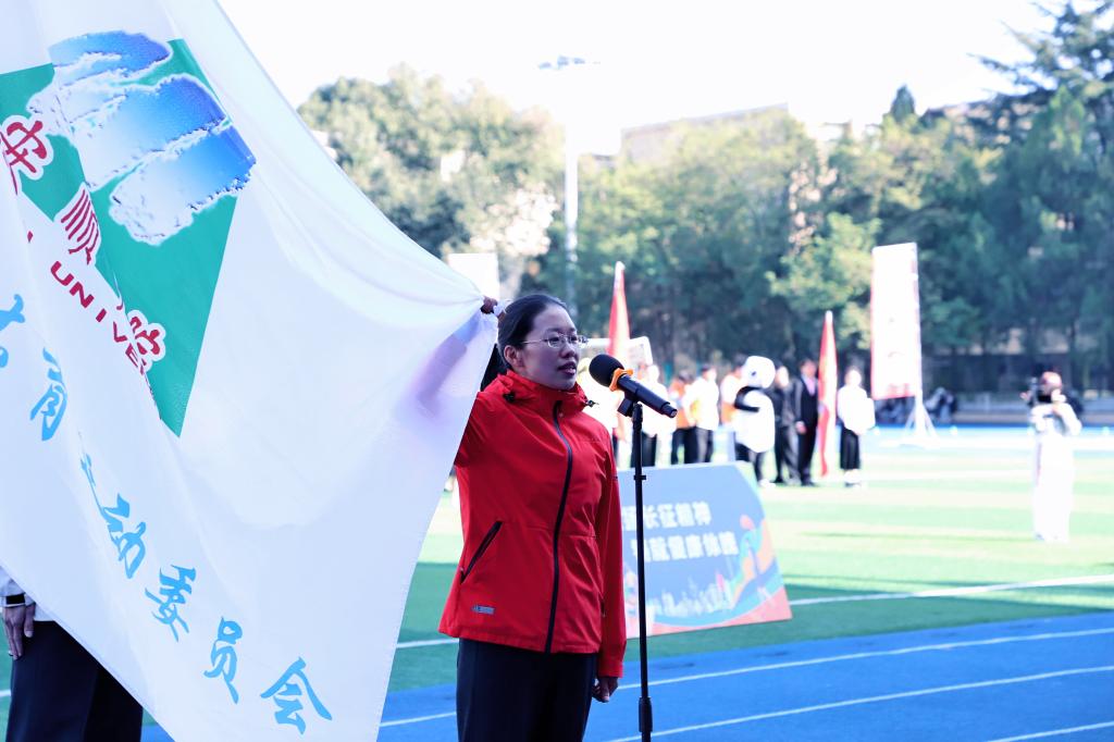 运动员代表王飞雁和裁判员代表孙春利分别进行宣誓,展现了同学们勇于挑战自我和裁判员的公平公正。