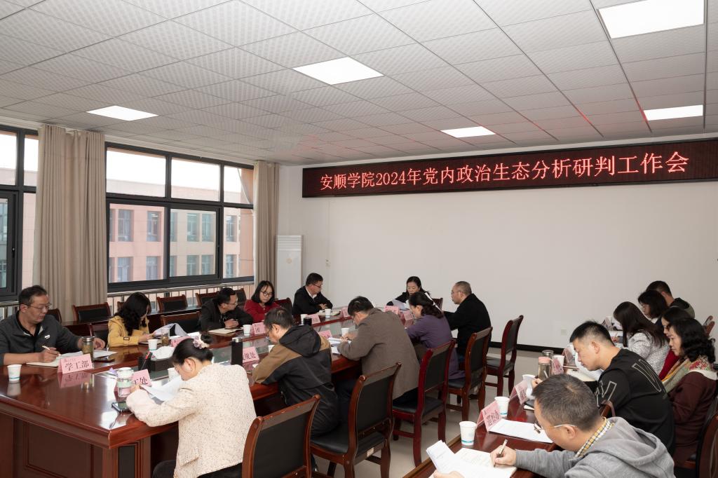 为常态化、高质量推进学校党委2024年度政治生态分析研判工作,11月12日下午,安顺学院召开了2024年党内政治生态分析研判工作会。学校党内政治生态分析研判机制成员单位及相关部门主要负责同志参会。会议由党委委员、纪委书记、监察专员蔡红英主持。