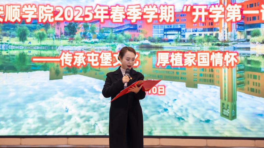 安顺学院2025年春季学期“开学第一课”在主持人——艺术学院舞蹈学专业主任胡婷娜老师对屯堡文化的介绍中拉开帷幕。
