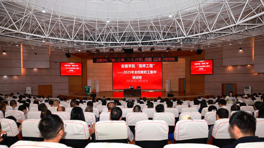 为深入贯彻落实国家关于新时代教师队伍建设改革的决策部署,扎实推进我校高素质专业化创新型教师队伍建设,持续提升人才培养质量和核心竞争力,2025年8月18日,安顺学院“强师工程”——2025年全校教职工集中培训在学术报告厅开班。安顺学院党委书记程绪权,党委委员、副校长殷红敏主持培训。