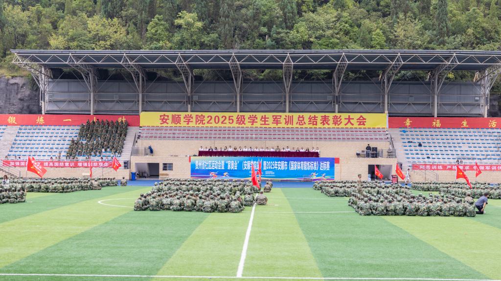 2025年9月22日上午,安顺学院2025级学生军训总结表彰大会在学校运动场隆重召开。学校领导出席大会,各二级学院党委负责人、2025级学生军训团团部机关主要干部、2025级各班班主任、部分专职辅导员参加大会。大会由安顺学院党委副书记,军训团临时党委书记、政治委员李琳主持。