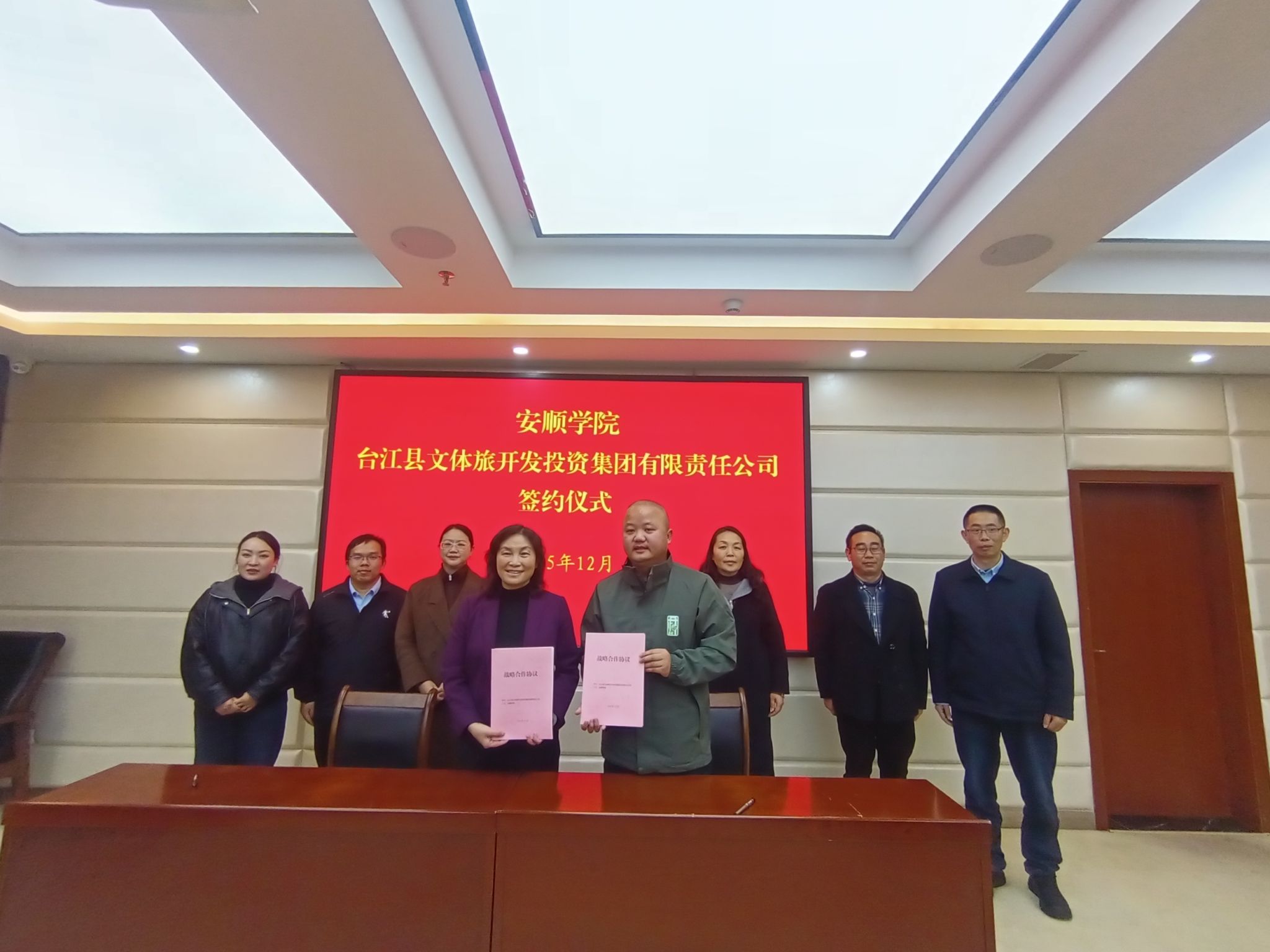 2025年12月17日上午,安顺学院校长曾丽带领调研团队一行7人,赴黔东南台江县与台江县文体旅开发投资集团开展产学研合作签约交流活动,安顺学院副厅级干部殷红敏参加调研。台江县县委常委、副县长王进红带队参加座谈及签约仪式。