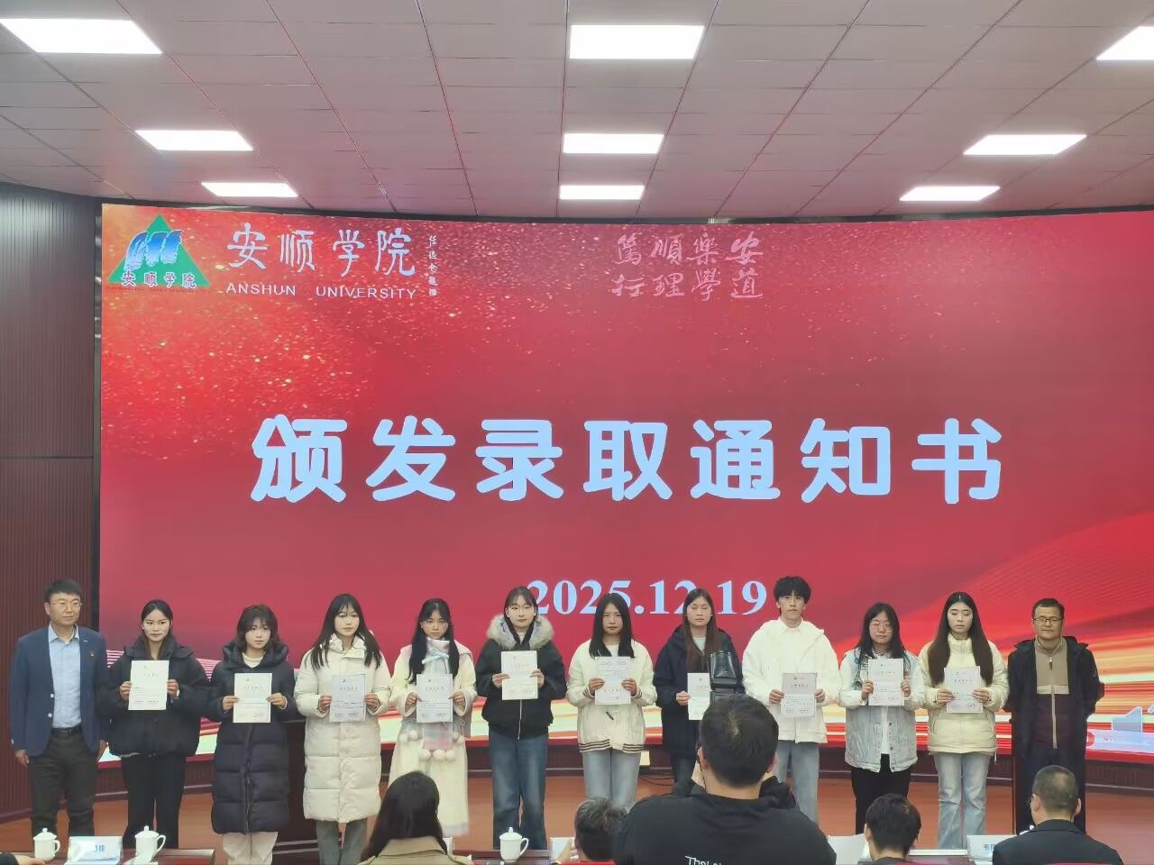 安顺学院教务处处长张玉波与旅游管理学院副书记白波为学员颁发录取通知书