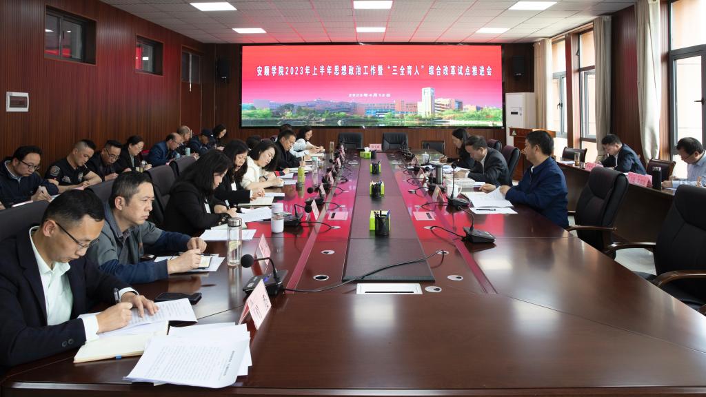 2023年,安顺学院将接受全省高校第二批“三全育人”综合改革试点单位验收,同时是建立理想信念教育基地和青少年网络安全科普示范基地,建设重点马克思主义学院启动之年。此次思想政治工作暨“三全育人”工作推进会,进一步全力推进我校“三全育人”综合改革试点高校建设工作,是落实“三全育人”综合改革试点具体工作任务的重要会议。(文/图:宣传部  蒋欣原/王键)