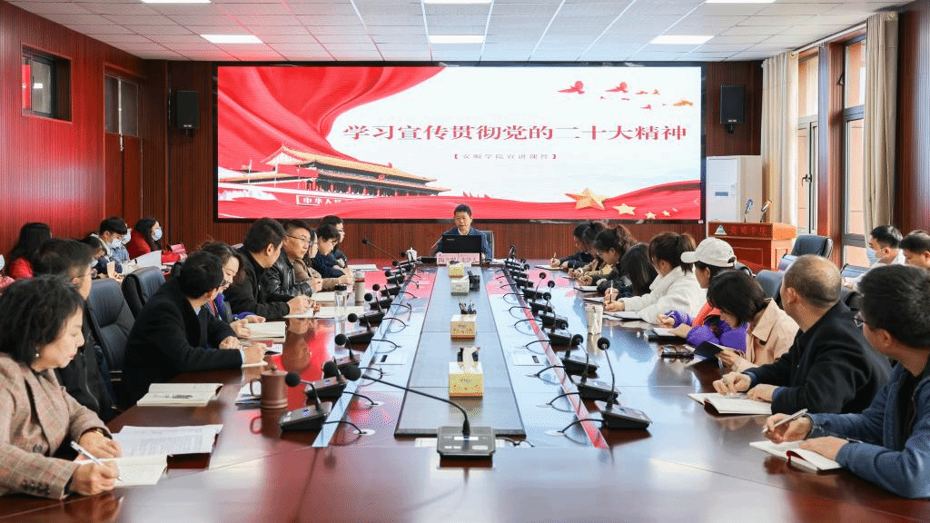 陶文彩从党的二十大的主题和主要成果;党的二十大的主要精神和丰富内涵;认真做好党的二十大精神的学习宣传贯彻;深入贯彻党的二十大精神,积极融入科教兴国战略,推动安顺学院特色高质量发展四方面深入宣讲了党的二十大精神。
