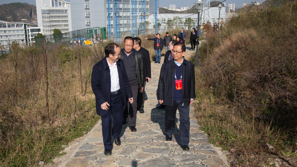 2018年11月29日,以贵州民族大学党委书记张学立为组长,兴义民族师范学院党委副书记李可迅为副组长,贵州大学团委书记龙汶、贵州师范大学求是学院党委书记尹毅、贵州民族大学组织部副部长、党建研究所所长刘勇为成员的贵州省普通高校思想政治教育工作检查专家组一行5人来到我校,对我校思想政治教育工作暨团学组织改革情况进行为期一天的检查。安顺学院党委书记罗荣彬、校长吴次南、党委副书记陶文彩、副校长令狐荣涛,各二级学院、各部、处室部门主要负责人,3位学生家长及思想政治教育工作迎检办成员全程参加检查工作。