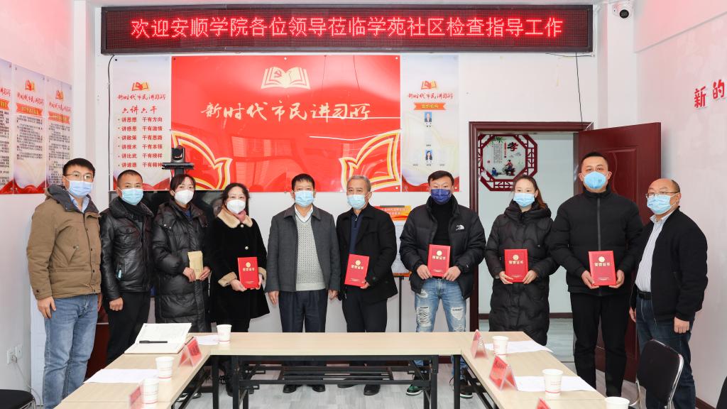 安顺学院党委副书记陶文彩(左中)到学苑社区调研“创文”工作