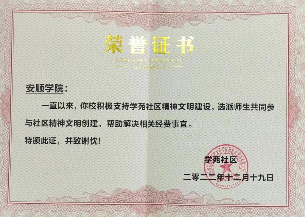 学苑社区为安顺学院及四家公司颁发荣誉证书