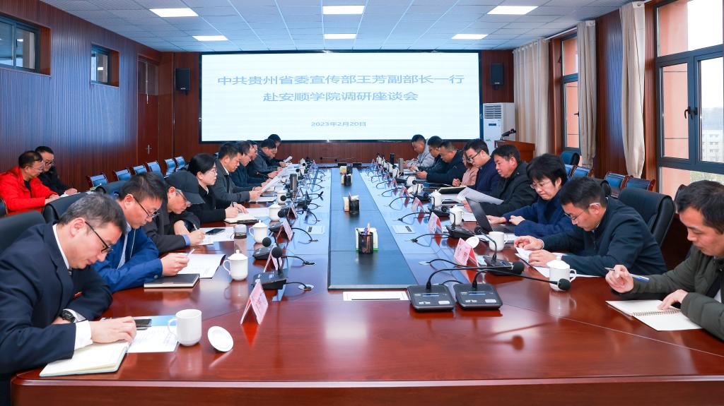 2月20日上午,省委宣传部副部长、省电影局局长王芳到安顺学院调研,省委宣传部理论处长罗幸炳、社科规划办主任杜长春、省社科联科普教育部副部长张志祥、省委党校宣教处副处长史亮、贵州广播电视台卫视中心副主任鞠飞等一行9人参加调研。安顺学院党委书记罗荣彬、副书记陶文彩、副院长张来、安顺市委宣传部常务副部长王洪勇及安顺学院有关处室负责人陪同调研。